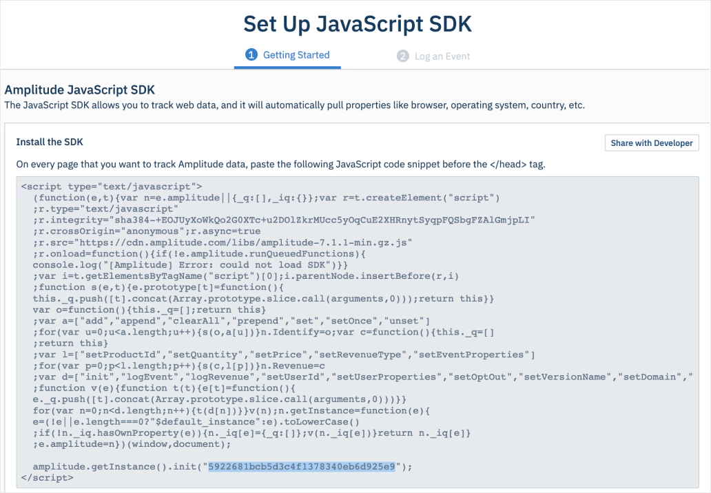 These events are just two examples. For more information about how to implement events, visit the Amplitude developer documentation.
