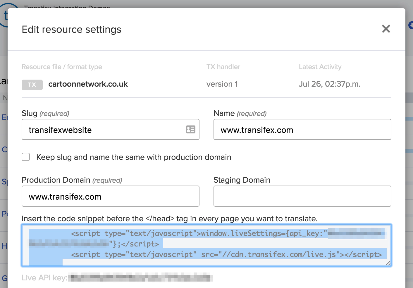 By installing the Transifex onto your site with a JavaScript snippet, your Ghost site becomes instantly translatable. You’ll be able to seamlessly save strings from your website to Transifex, review translations as they appear on the front-end, and publish them - all without any dependencies.